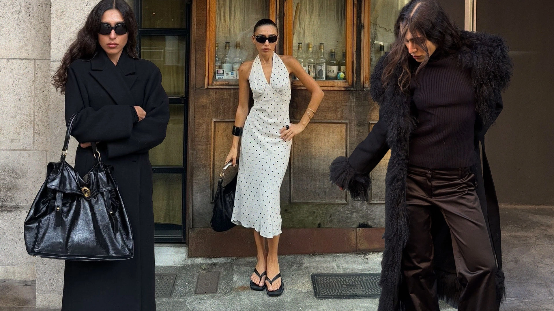 Honestly, anything Flore Flore. All my basics are now being replaced for this brand—always happy to invest in their high quality pieces. Francesca Pecchenino satin pants, Tkees classic leather flip flops, Aritzia boyfriend zip fleece jackets! My WTF must-haves. Vintage satin pants, pointed-toe boots, ballerina slippers, a classic vintage leather coat, and some oversized sunglasses!