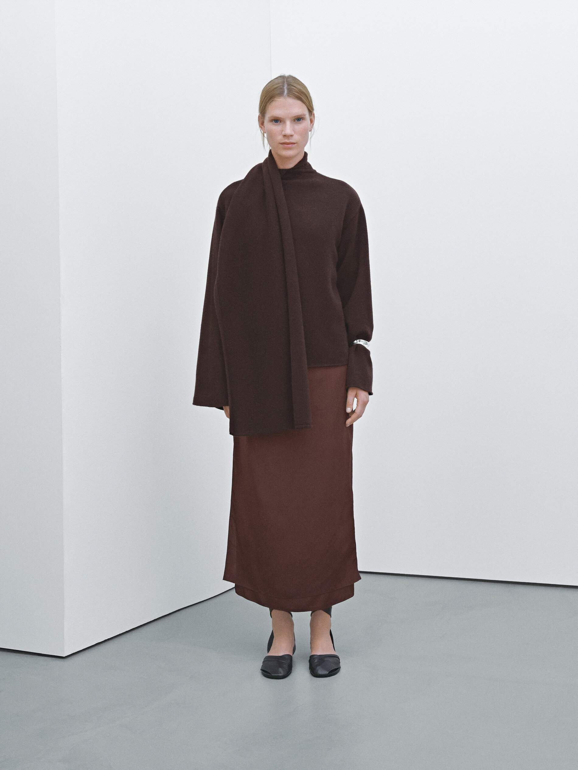 From Copenhagen to London, fashion people are turning to scarf detailing to bring a point of difference to their simple knitwear. As a category, knitwear doesn't often get updated in the same way other pieces do, especially not in as timeless or as premium-looking a style as this. The scarf knit is exactly what it sounds like, an integration of a scarf into our beloved knitwear, arriving just in time for the coldest months.